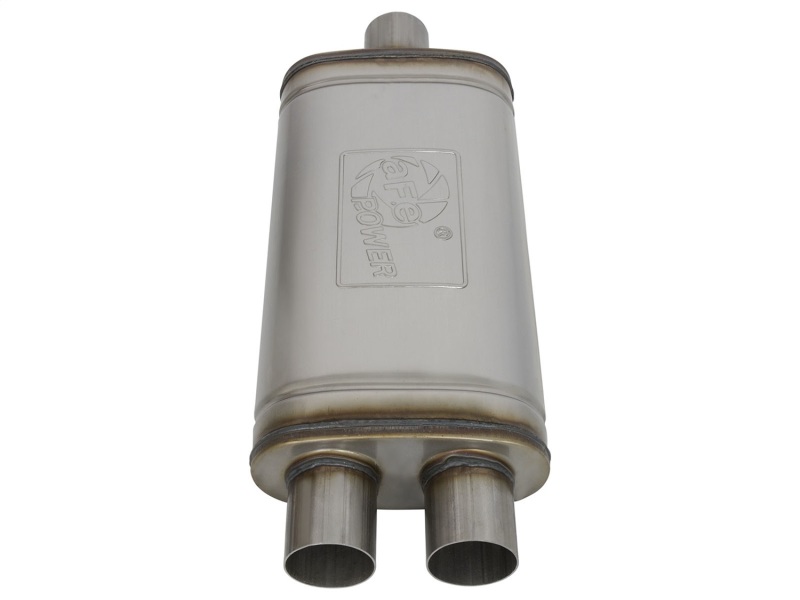 The aFe Universal fit 409 Stainless Steel Performance Muffler is designed to provide a deep, throaty, powerful sound on acceleration but maintain a smooth sound at idle. This muffler is constructed of brushed finished 409 stainless steel and uses a straight through perforated core with heat resistant packing to reduce backpressure and maximize exhaust flow. You will see increased performance and improved throttle response over the factory exhaust. Also featuring a stamped aFe Power logo for an aggressive style.