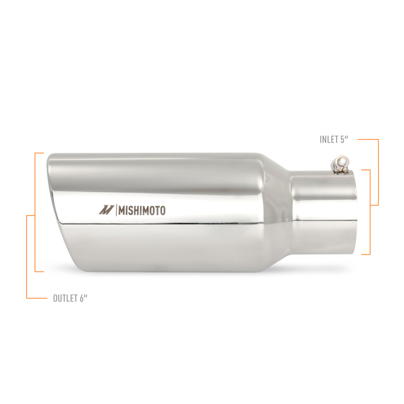 Your exhaust is the most multi-faceted system of your vehicle. It not only has to perform well, but it must also sound and look good. That makes choosing the right exhaust tip a tricky task, but luckily, Mishimoto offers a wide variety of exhaust tips that will put the cherry on top of your build.—-Our polished diesel exhaust tips are constructed from 304 stainless-steel with a polished finish and 6-inch slash-cut design for a sleek and aggressive look. Installation of Mishimoto diesel exhaust tips is easy with our slip-fit design that easily fits over existing 4-inch or 5-inch piping and integrated clamp to lock your tip in place. Like all our exhaust and performance parts, these Mishimoto polished stainless-steel diesel exhaust tips are backed by our Mishimoto Lifetime Warranty for a lifetime of style and durability.